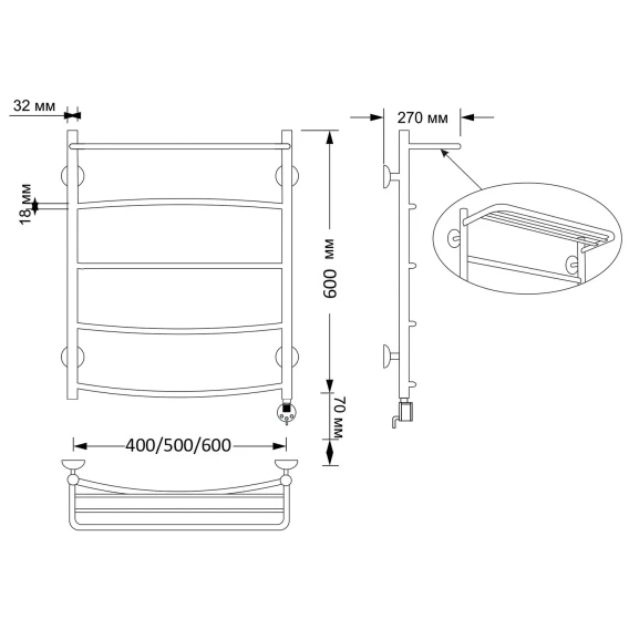 Полотенцесушитель электрический 670x432 ТЭН правый Secado Милан 2 4603777462963