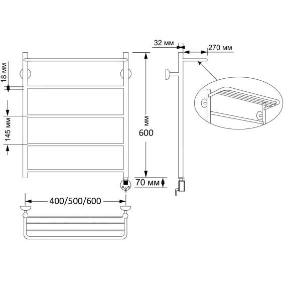 Полотенцесушитель электрический 670x532 ТЭН правый Secado Триада 4 4603777469504