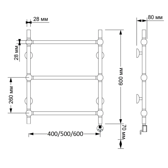 Полотенцесушитель электрический 1270x532 ТЭН правый Secado Мерида 2 4603777463830