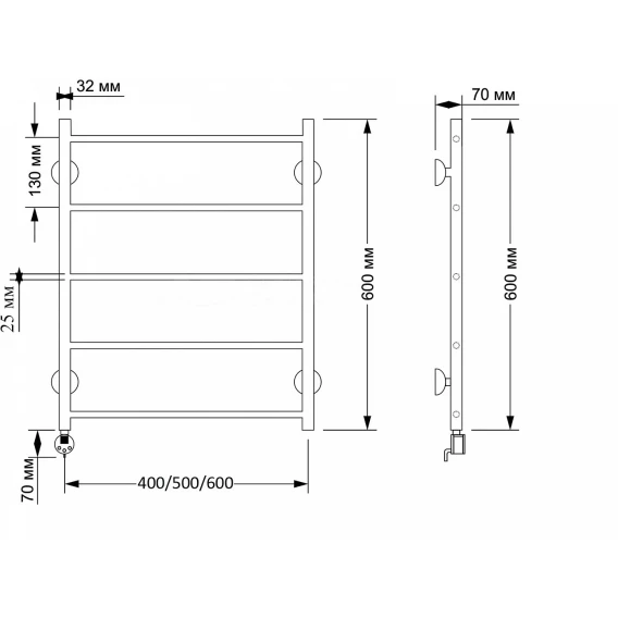 Полотенцесушитель электрический 670x632 ТЭН левый Secado Агата 2 4603777461935