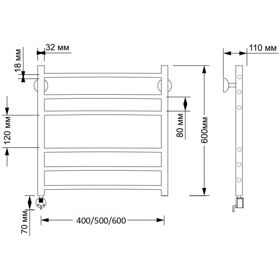 Полотенцесушитель электрический 570x632 ТЭН левый Secado Мерида 1 4603777463656