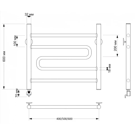 Полотенцесушитель электрический 870x430 ТЭН левый Secado Корато 1 4603777479398
