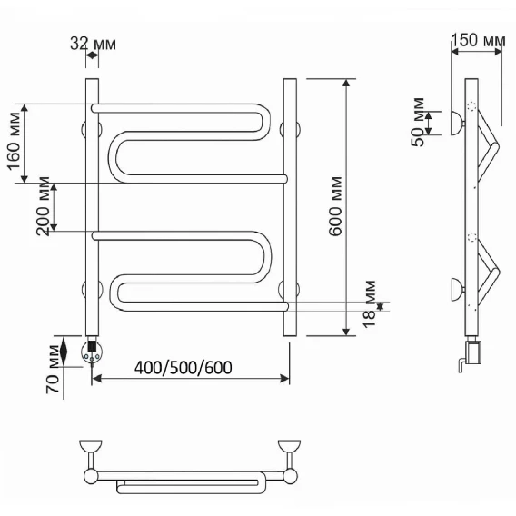Полотенцесушитель электрический 670x632 ТЭН левый Secado Валенсия 4603777464493