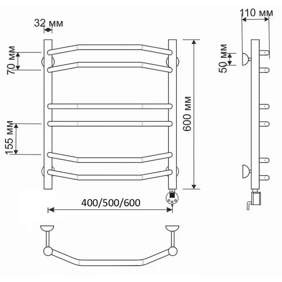 Полотенцесушитель электрический 670x632 ТЭН правый Secado Агата 4 4603777462277