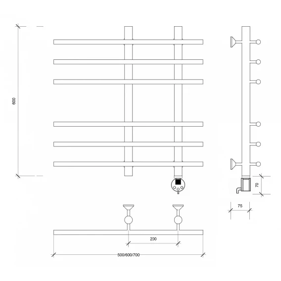 Полотенцесушитель электрический 670x700 ТЭН правый Secado Турин 3 4603777455651