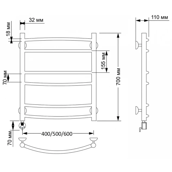 Полотенцесушитель электрический 670x432 ТЭН левый Secado Милан 2 4603777462956