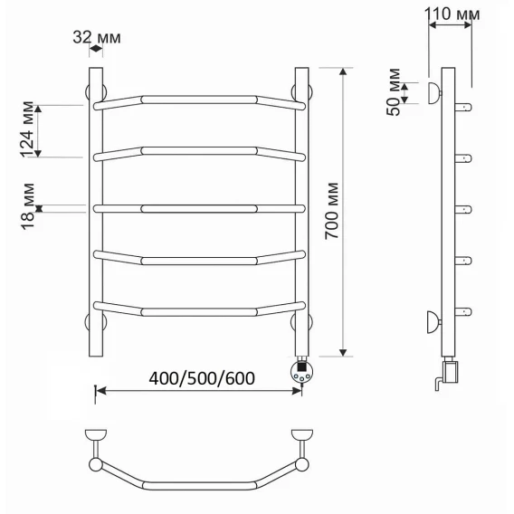 Полотенцесушитель электрический 670x432 ТЭН правый Secado Агата 2 4603777461829