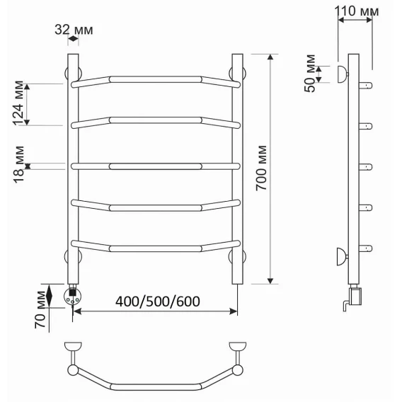 Полотенцесушитель электрический 770x532 ТЭН левый Secado Агата 1 4603777477677