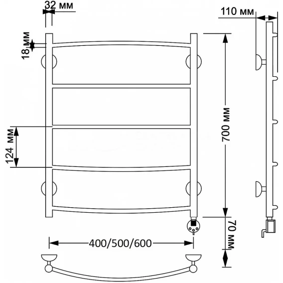 Полотенцесушитель электрический 770x532 ТЭН правый Secado Милан 1 4603777478766