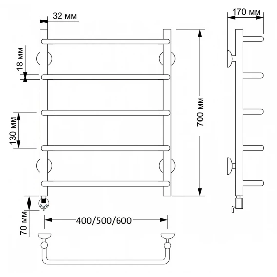 Полотенцесушитель электрический 570x632 ТЭН левый Secado Мерида 1 4603777463656