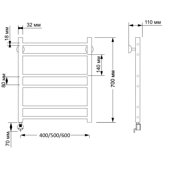 Полотенцесушитель электрический 670x432 ТЭН левый Secado Триада 4 4603777469344