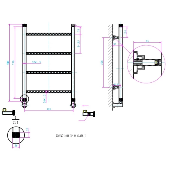 Полотенцесушитель электрический 784x495 Boheme Oro 709