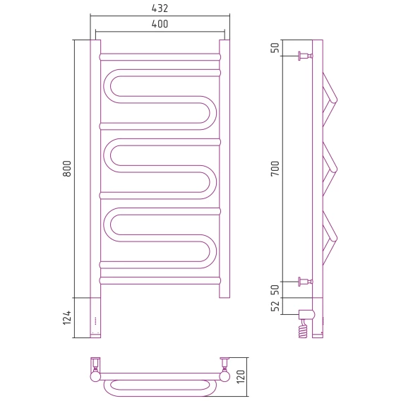 Полотенцесушитель электрический 800x400 белый матовый МЭМ левый Сунержа Элегия 3.0 30-5818-8040