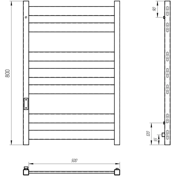 Полотенцесушитель электрический 800x545 диммер слева Laris Гефест ЧКЧ7 73207616