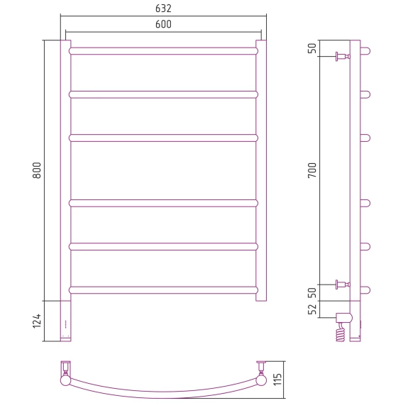 Полотенцесушитель электрический 800x600 белый глянец МЭМ левый Сунержа Галант 3.0 12-5800-8060