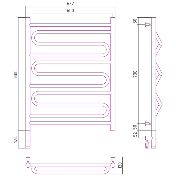 Полотенцесушитель электрический 800x600 темный титан муар МЭМ левый Сунержа Элегия 3.0 15-5818-8060