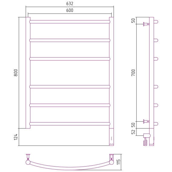 Полотенцесушитель электрический 800x600 золотой МЭМ правый Сунержа Галант 3.0 03-5801-8060