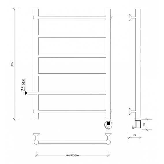 Полотенцесушитель электрический 570x432 ТЭН правый Secado Триада 1 4603777460921