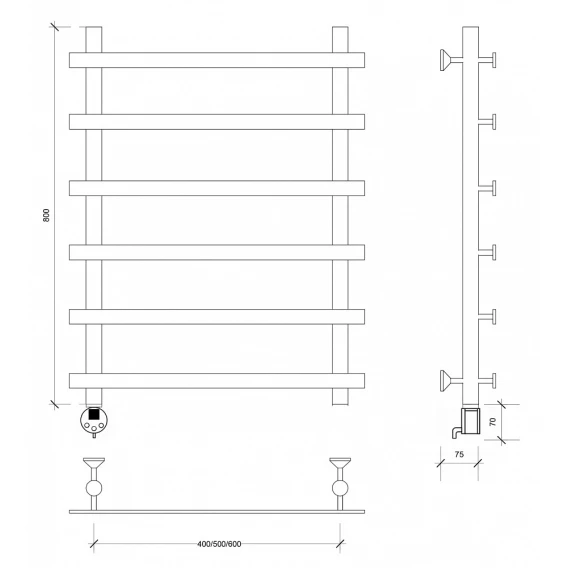 Полотенцесушитель электрический 670x700 ТЭН правый Secado Турин 6 4603777456115