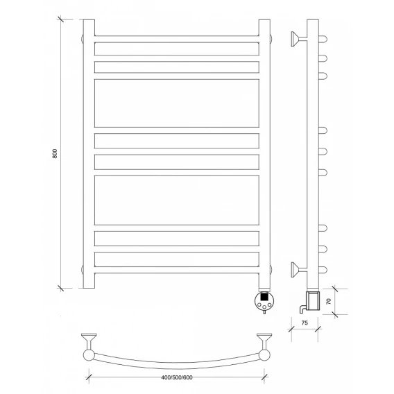 Полотенцесушитель электрический 870x532 ТЭН правый Secado Милан 3 4603759409092