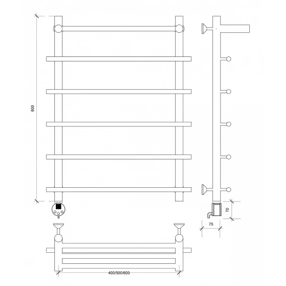 Полотенцесушитель электрический 870x600 ТЭН левый Secado Турин 1СП 4603759404059