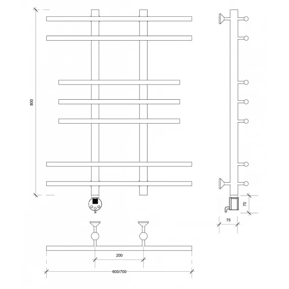 Полотенцесушитель электрический 870x600 ТЭН левый Secado Турин 2 4603777455545