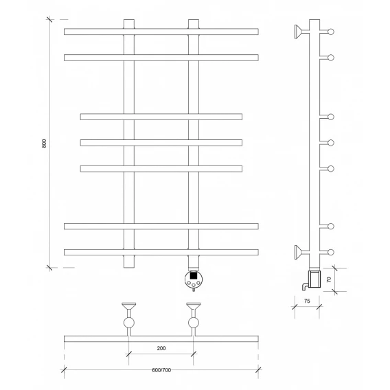 Полотенцесушитель электрический 670x632 ТЭН левый Secado Фалерони 1 4603777464783