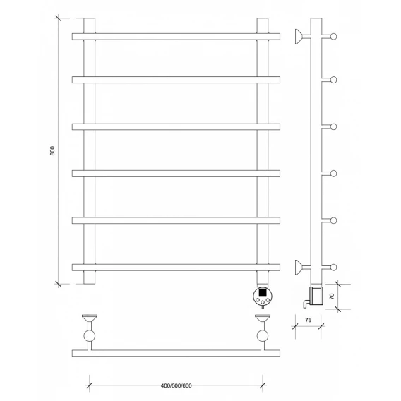 Полотенцесушитель электрический 870x700 ТЭН правый Secado Турин 1 4603777455095