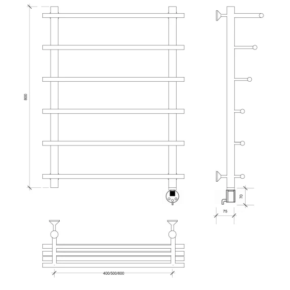 Полотенцесушитель электрический 870x700 ТЭН правый Secado Турин 6 4603777456153