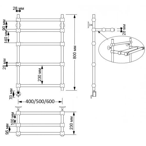 Полотенцесушитель электрический 870x632 ТЭН левый Secado Фалерони 2 4603777466534