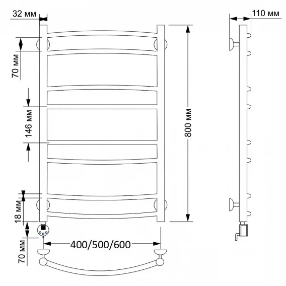 Полотенцесушитель электрический 870x532 ТЭН левый Secado Милан 5 4603759403335
