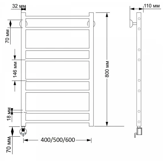 Полотенцесушитель электрический 870x532 ТЭН правый Secado Триада 4 4603759409788