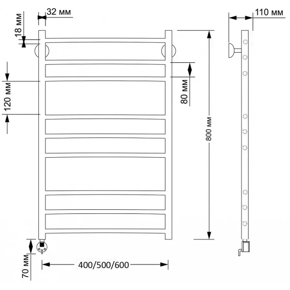 Полотенцесушитель электрический 570x632 ТЭН правый Secado Мерида 1 4603777463663