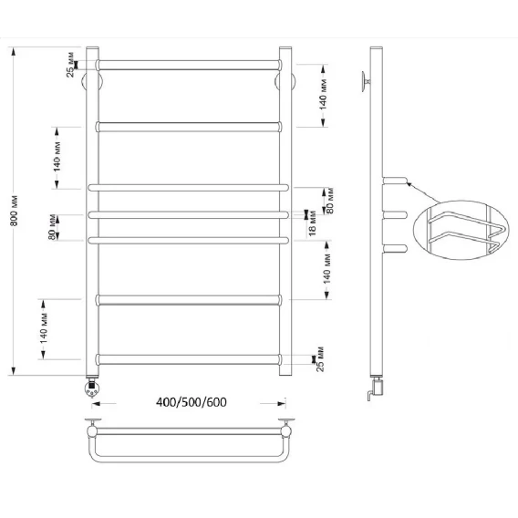 Полотенцесушитель электрический 670x432 ТЭН левый Secado Триест 4603777466053