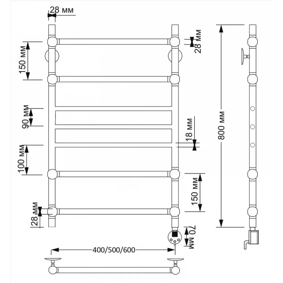 Полотенцесушитель электрический 870x700 ТЭН левый Secado Палермо 4603777465926