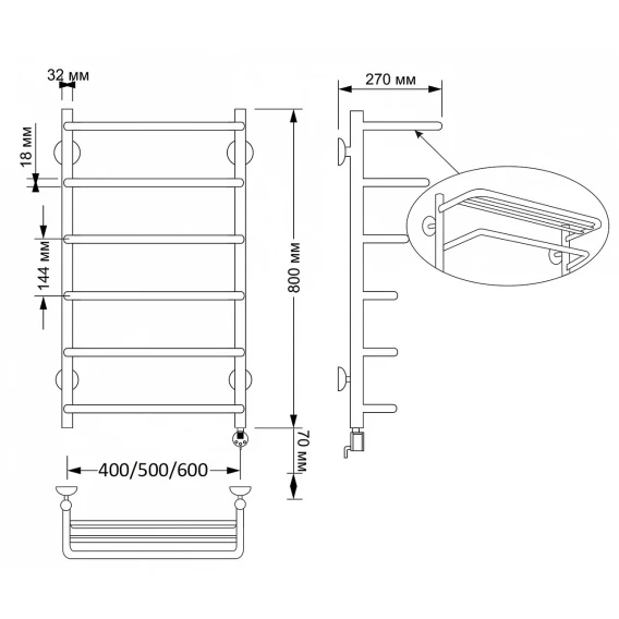 Полотенцесушитель электрический 870x432 ТЭН правый Secado Мерида 2 4603777463762