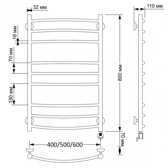 Полотенцесушитель электрический 870x432 ТЭН правый Secado Милан 3 4603777463236