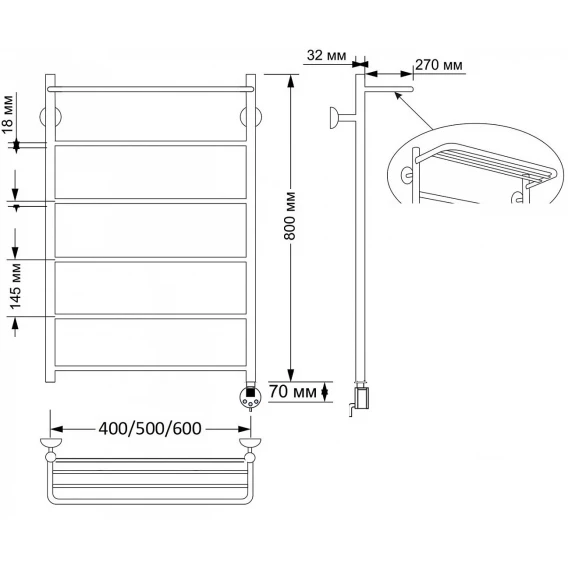 Полотенцесушитель электрический 870x532 ТЭН правый Secado Милан 4 4603777478940