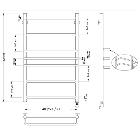Полотенцесушитель электрический 870x532 ТЭН левый Secado Милан 5 4603759403335
