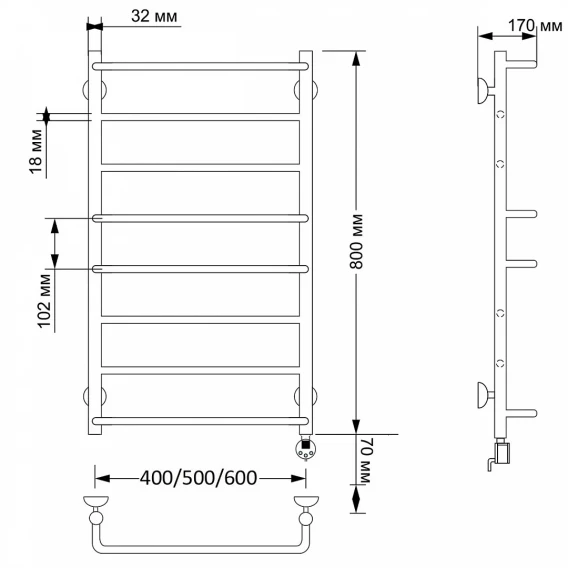 Полотенцесушитель электрический 870x432 ТЭН правый Secado Верона 1 4603777464103