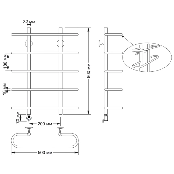 Полотенцесушитель электрический 870x500 ТЭН левый Secado Венеция 4603777477912