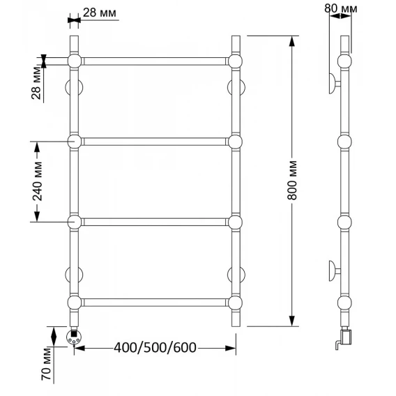 Полотенцесушитель водяной 800x430 Secado Комано 1КСП 4603777441210
