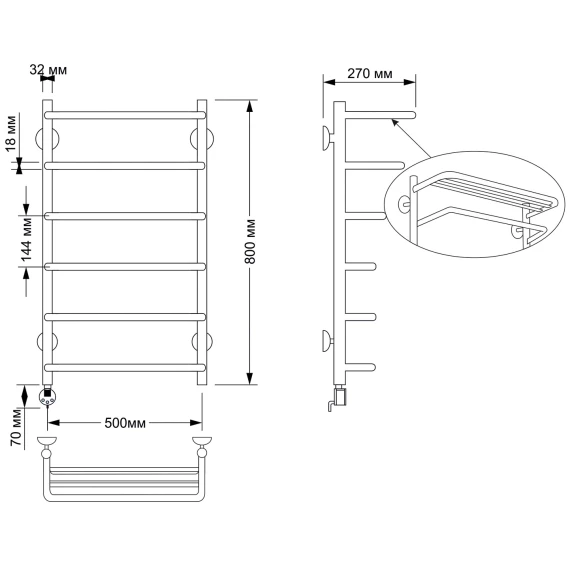 Полотенцесушитель электрический 870x532 ТЭН правый Secado Мерида 2 4603777478681