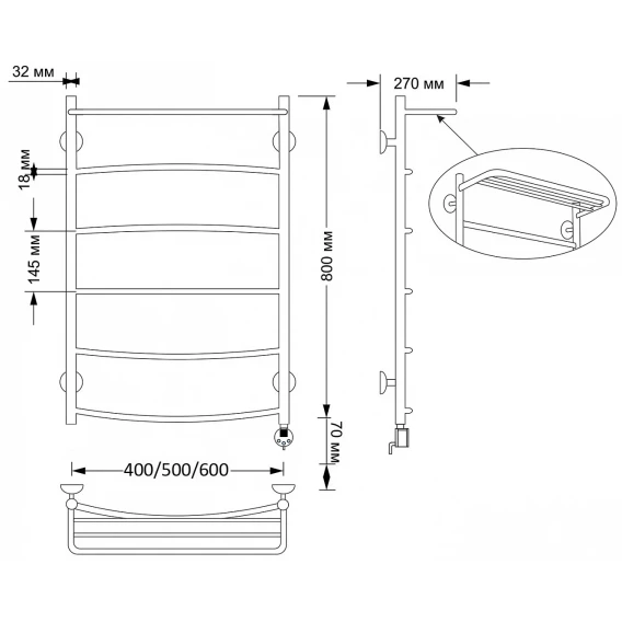 Полотенцесушитель электрический 870x532 ТЭН правый Secado Милан 4 4603777478940