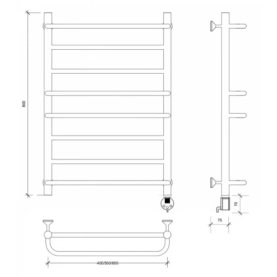 Полотенцесушитель электрический 870x532 ТЭН правый Secado Верона 1 4603759408514