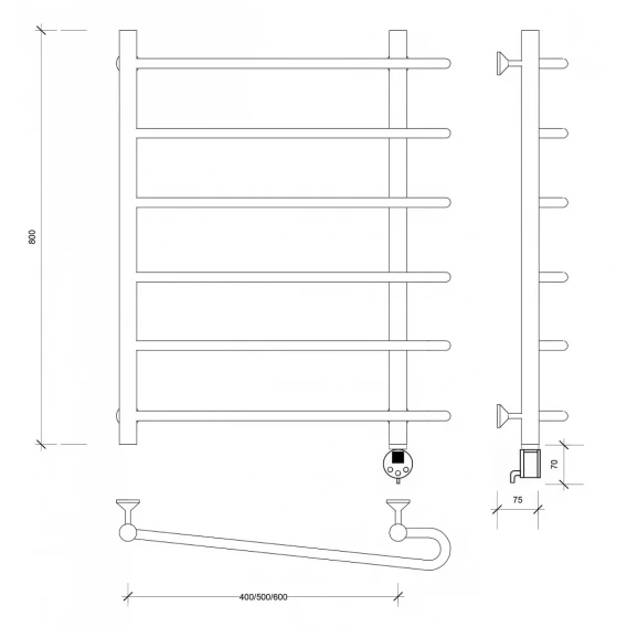 Полотенцесушитель электрический 870x532 ТЭН правый Secado Верона 1 4603759408514