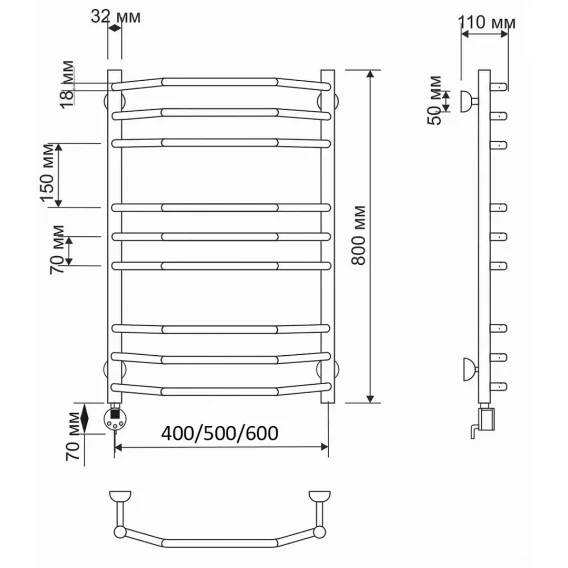 Полотенцесушитель электрический 570x632 ТЭН правый Secado Агата 1 4603777461706