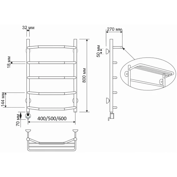 Полотенцесушитель электрический 670x632 ТЭН левый Secado Агата 2 4603777461935
