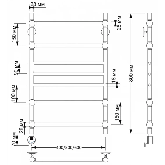Полотенцесушитель электрический 670x532 ТЭН левый Secado Триест 4603777478520