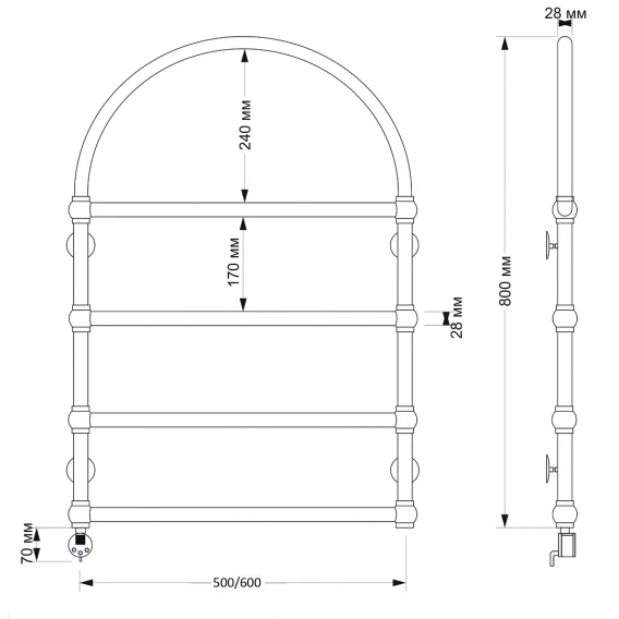 Полотенцесушитель электрический 670x432 ТЭН левый Secado Бароло 4603759404615